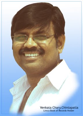 Draughtsmen, artist,Craftsmen,all persons with magic in their hands,Here you have a craftsman with a diffrence .40 years old Venkata chary Chintapatla is an artist of a diffrenct kind who has invented the art of line script. An art never heard of created with perfect dexterity of his talented hands. This script when given a glance projects a picture of only vertical line.When inclined to a 45, angle the alphabets in whatever language is seen clearly. For Venkata chary it was just a hobby, Later after making himself perfect in English languages in this scrpipt for which he took five months he decided to try his hand in other language. Now he is master in eight indian languages.