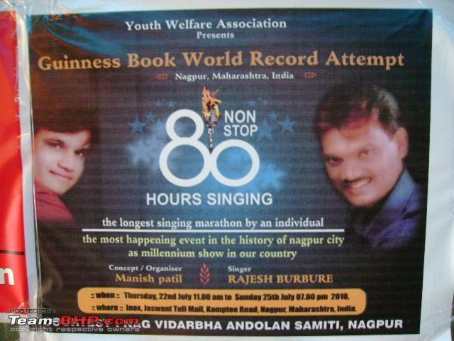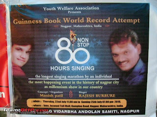 Rajesh Burbure, 34, who started singing on July 22 ended his feat yesterday and is all set to make to the new world record in Guinness Book of records. He had thus surpassed the previous record of 76.7 hours singing by South Korean singer Kim Sen Oke.