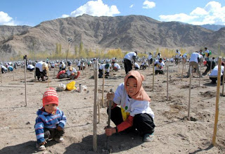 More than 15,000 volunteers reached Changa village, nearly 40 km from Leh town, in the morning, but only 9,000 were allowed to participate.