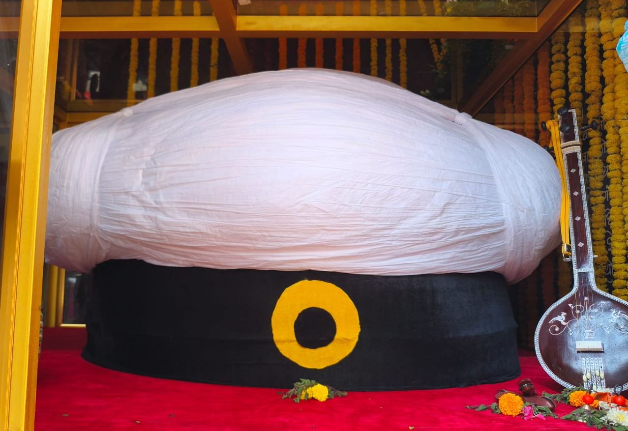 On the occasion of the 375th Sadaiv Vaikunth Gaman Sohda of Jagadguru Sant Shree Tukaram Maharaj. DILIP SONIGARA JEWELLERS, Pimpri-Chinchwad, Maharashtra, India, organized a World Record Event and has made the World’s largest replica of Jagadguru Sant Shree Tukaram Maharaj’s Pagdi (Turban) and offering to JAGADGURU SANT SHREE TUKARAM MAHARAJ SANSTHAN TEMPLE. The Pagdi (Turban) measures 4 Feet in Height, 7 Feet in Length & 23 Feet in Circumference Diameter using 500 Mtr. Cotton Cloths and set a New World Record as of 11th March 2025 at Gatha Temple, Shree Kshetra Dehu, Haveli, Pune, Maharashtra.